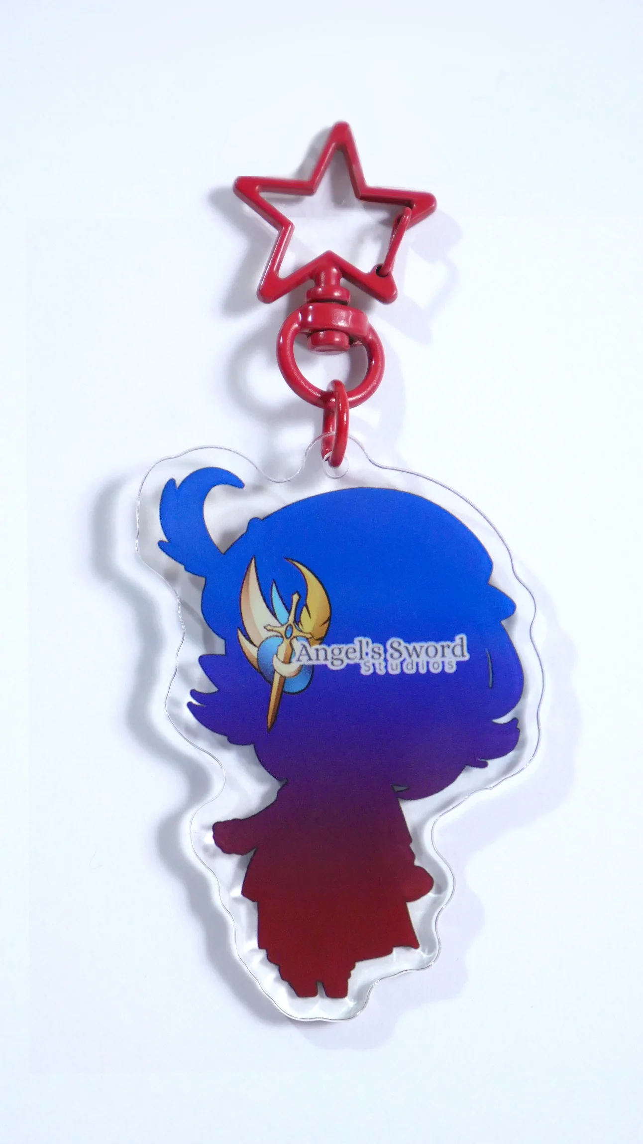 A Leaflit keychain in her classic Angel’s Sword uniform! You too can always have a Guild Girl by your side, doing her best to get you the best quests. It is made out of sturdy acrylic and comes with a cute red, metal star clip for ease of use. You could hang it for display or take it with you to display on your favorite bag.